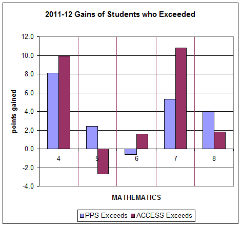 Gains achieved by students who exceeded the previous year: PPS compared to ACCESS