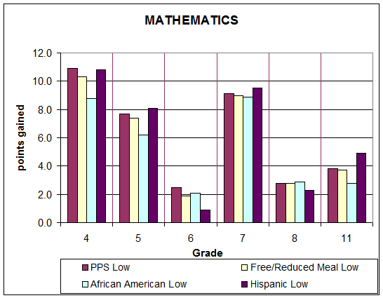 Portland Public Schools 2011-12 Achievement Gains: Low-Performing Students broken out by Income and Ethnicity