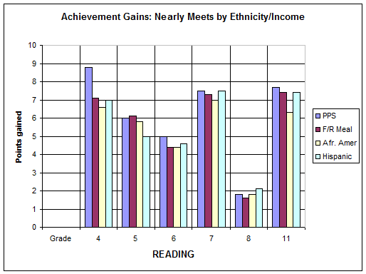 Portland Public Schools 2011-12 Achievement Gains: "Nearly Meets" Students broken out by Income and Ethnicity