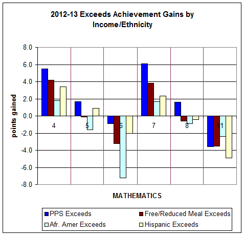 2012-13 Achievement gains; Exceeds broken out by Income and Ethnicity
